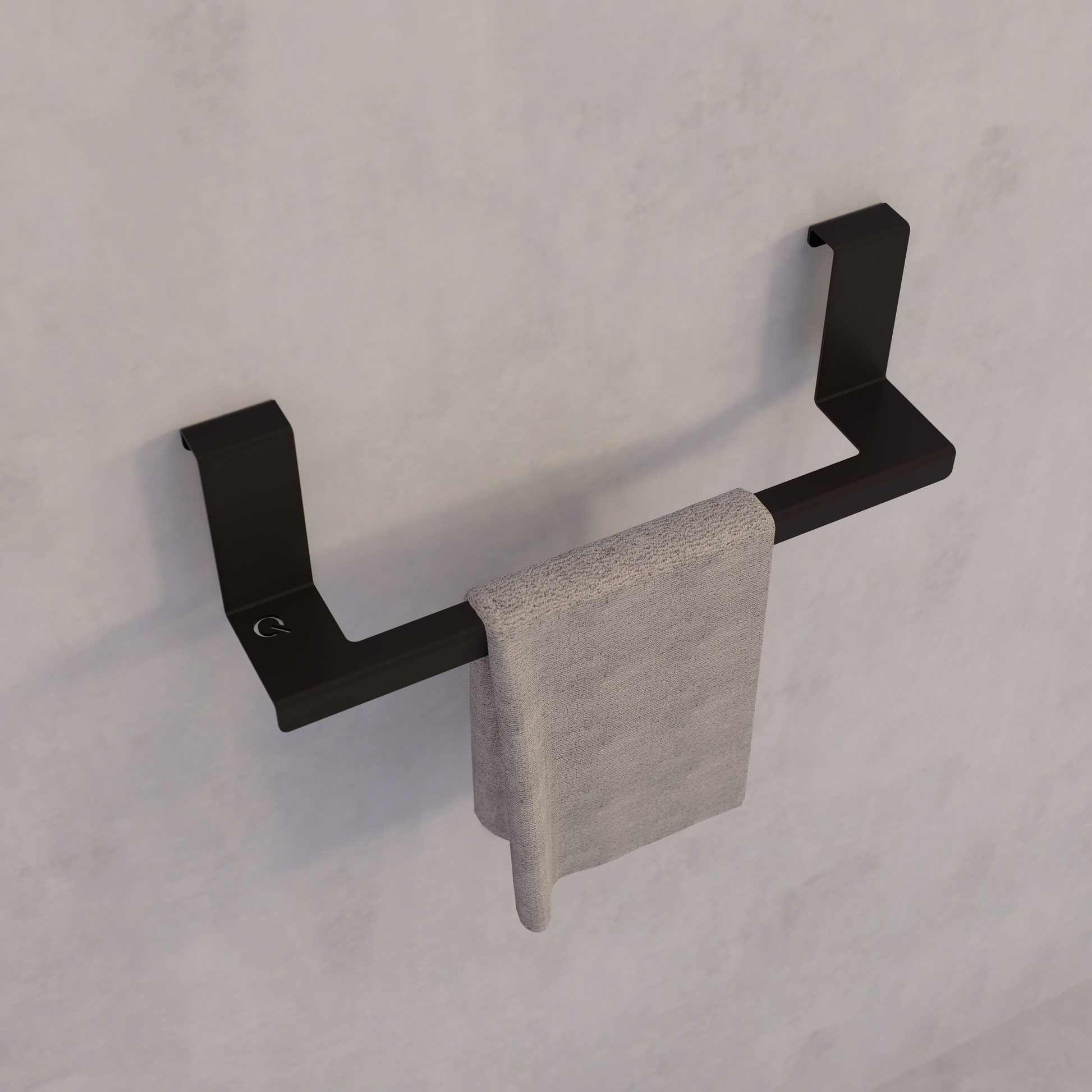 Je hangt Qers eenvoudig aan de rand van een kastdeur, zo blijft je handdoek altijd binnen handbereik, zonder blijvende montage. Minimalistisch design, maximale functionaliteit.