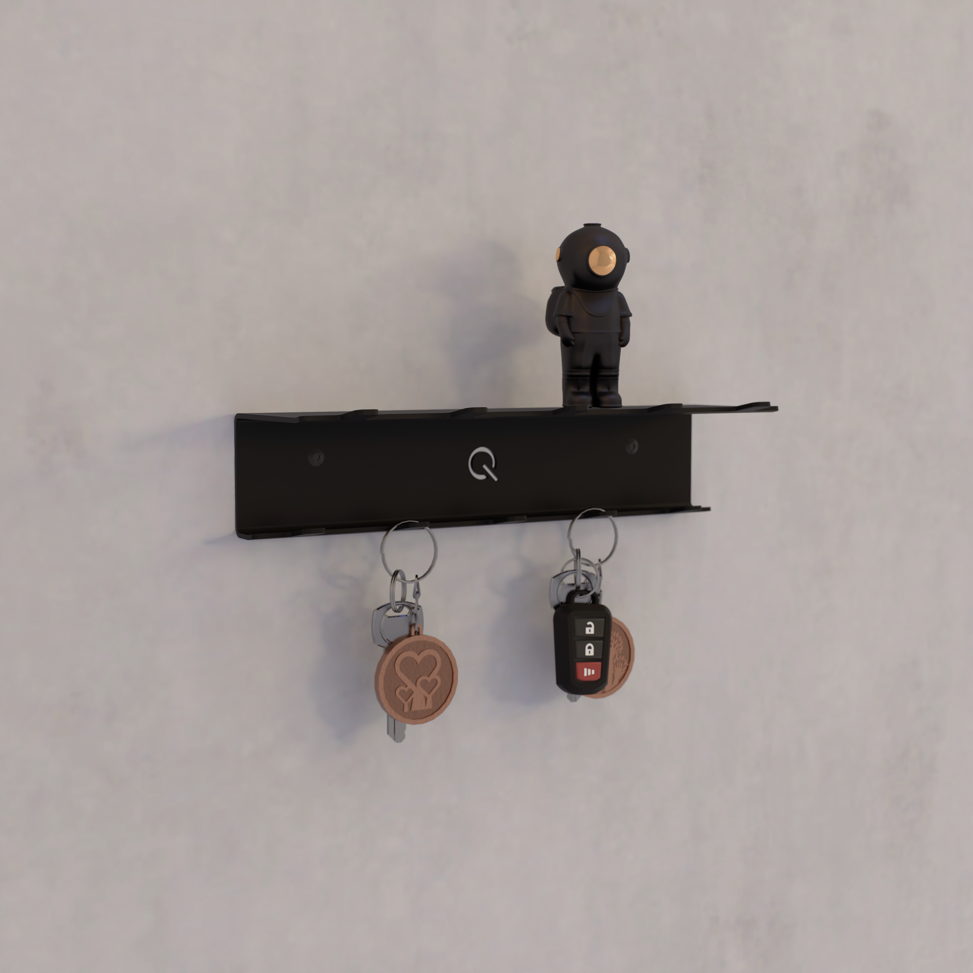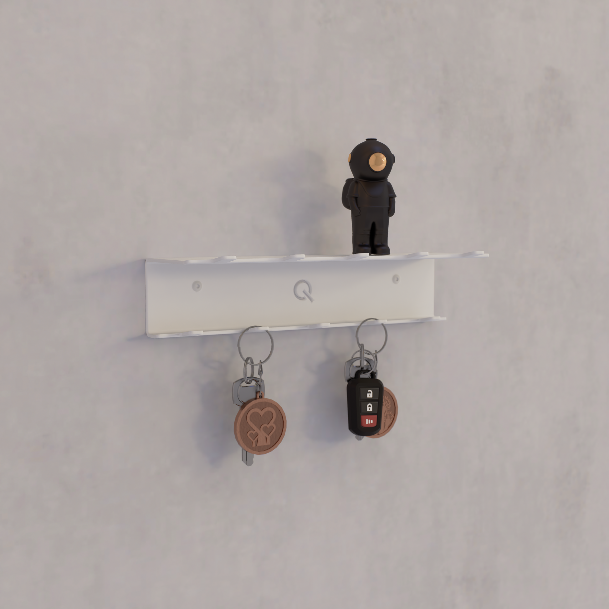 Qey is de praktische én stijlvolle sleutelboshouder van Qstiel. Met meerdere haakjes en een handige legger bovenaan combineert Qey orde met een decoratief accent.